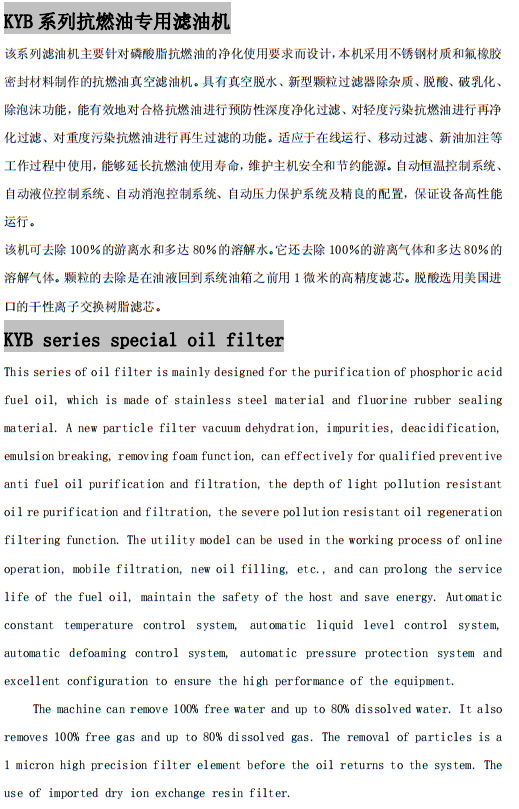 KYB系列抗燃油專(zhuān)用濾油機(jī)