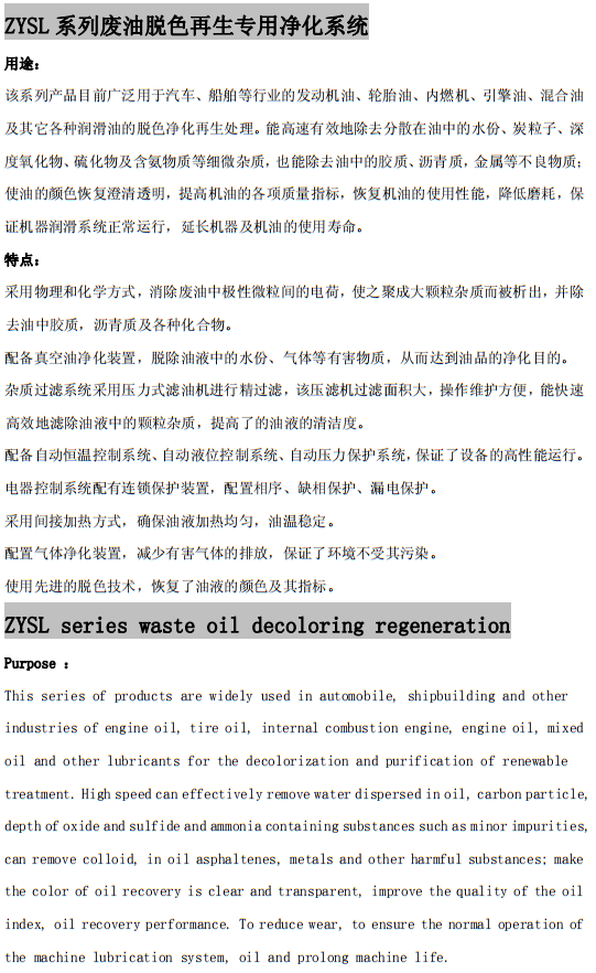 ZYSL系列廢油脫色再生專用凈化系統(tǒng)