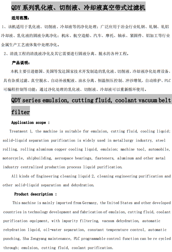QDY系列乳化液、切削液、冷卻液真空帶式過濾機